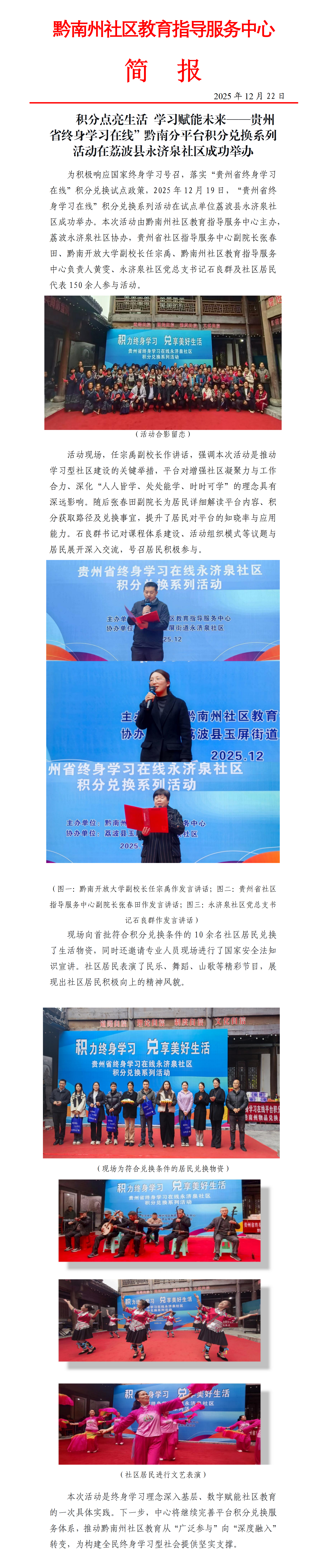 积分点亮生活 学习赋能未来——贵州省终身学习在线”黔南分平台积分兑换系列活动在荔波县永济泉社区成功举办