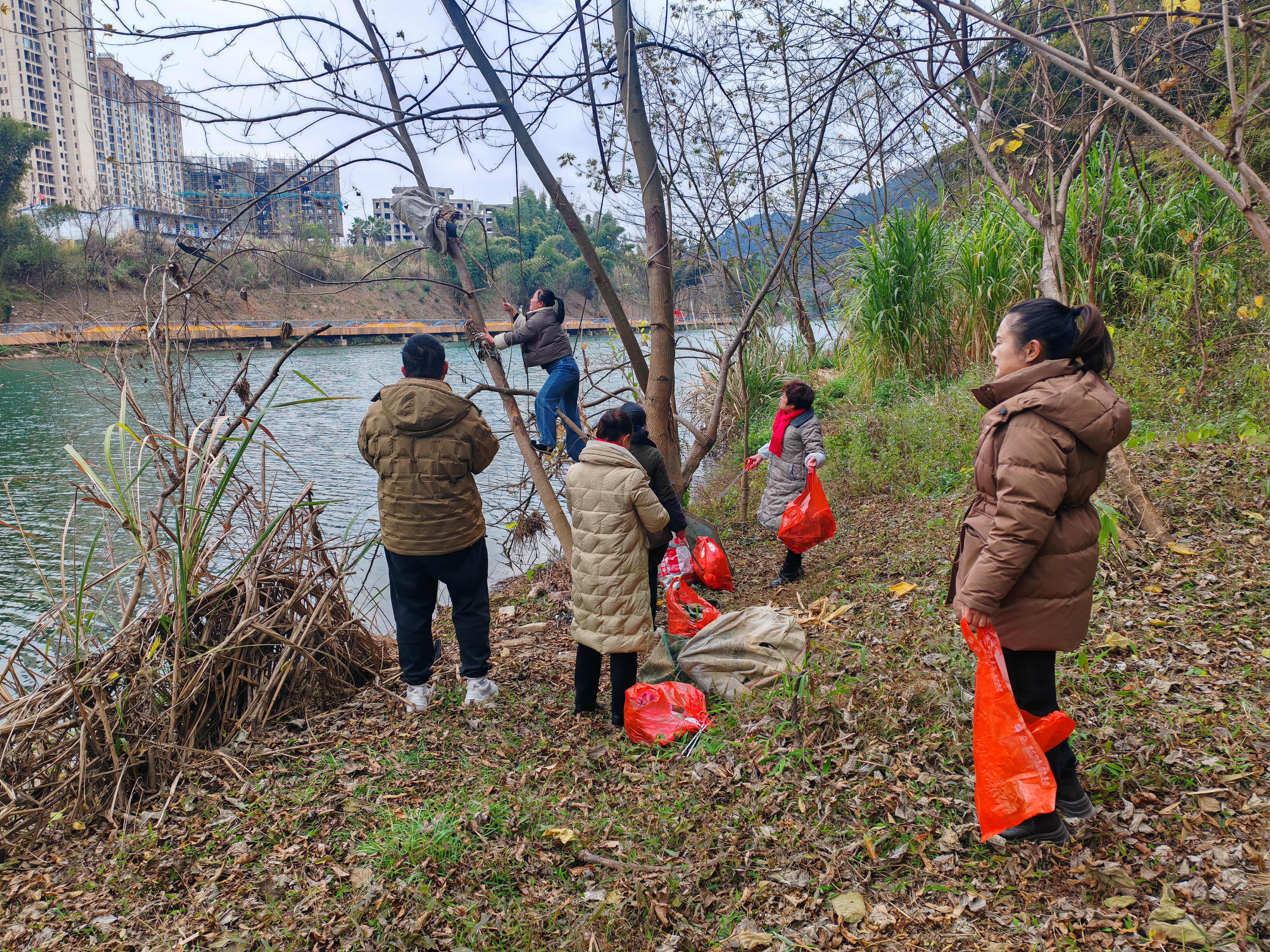 沿河一带清理垃圾