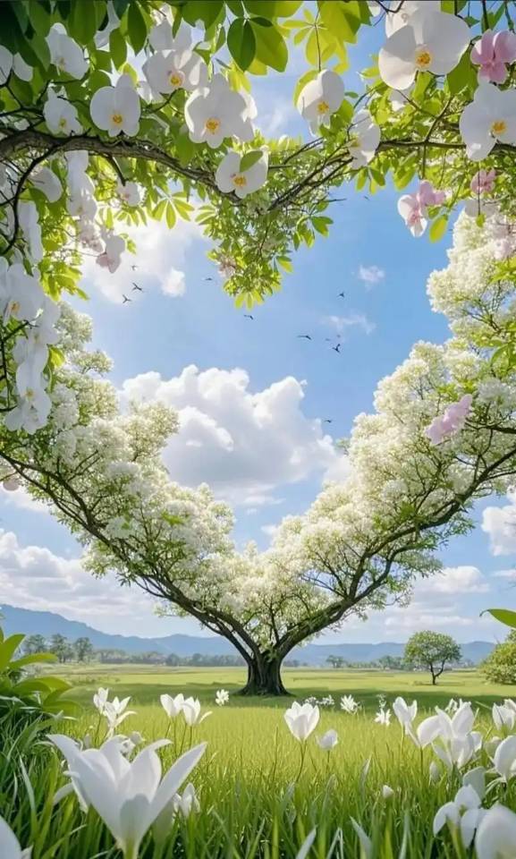 枝头攒成心形的诗,花瓣落满春日的信,风一吹,连呼吸都裹着甜意。
