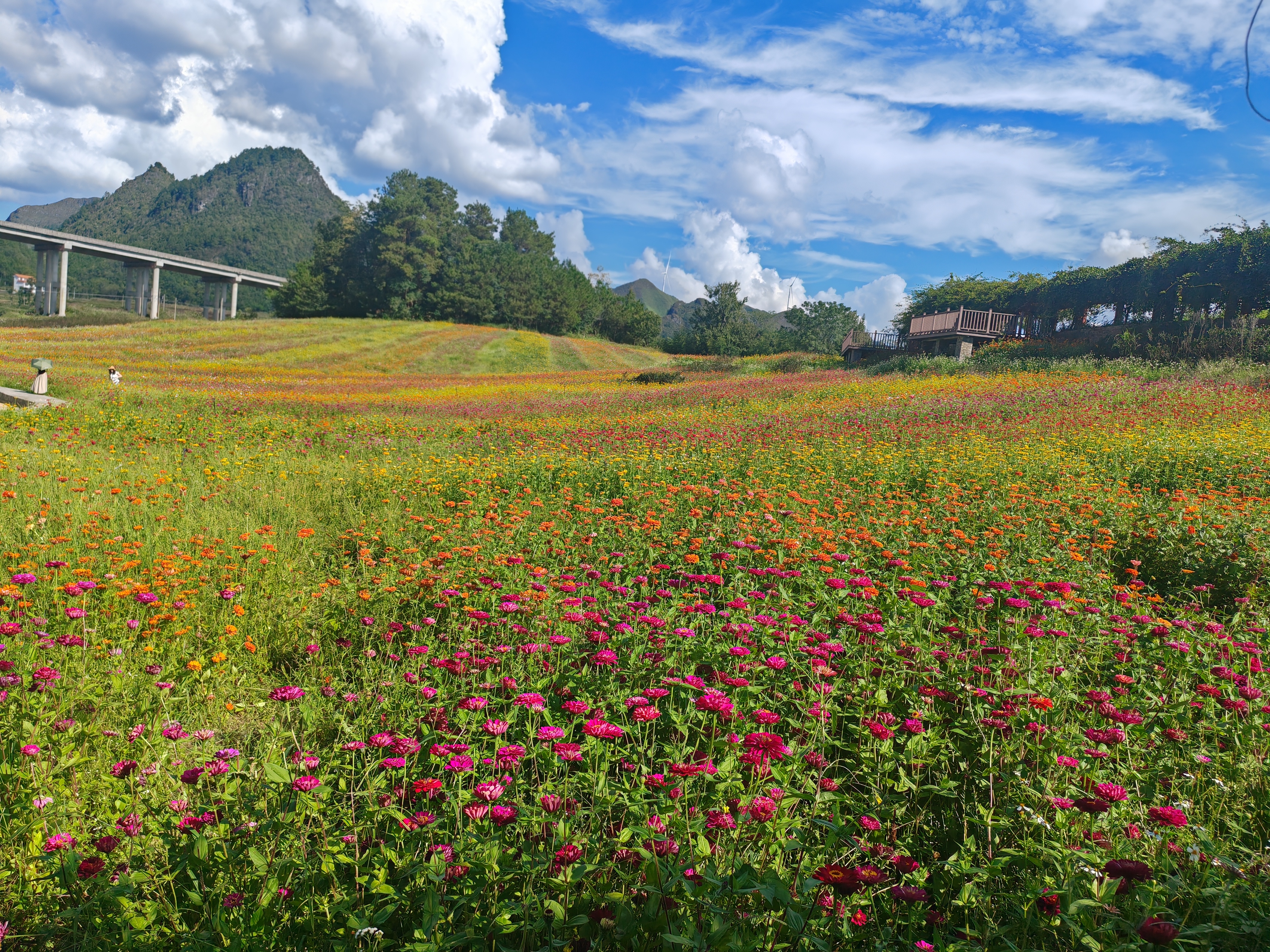 蔚蓝天空下美丽的格桑花