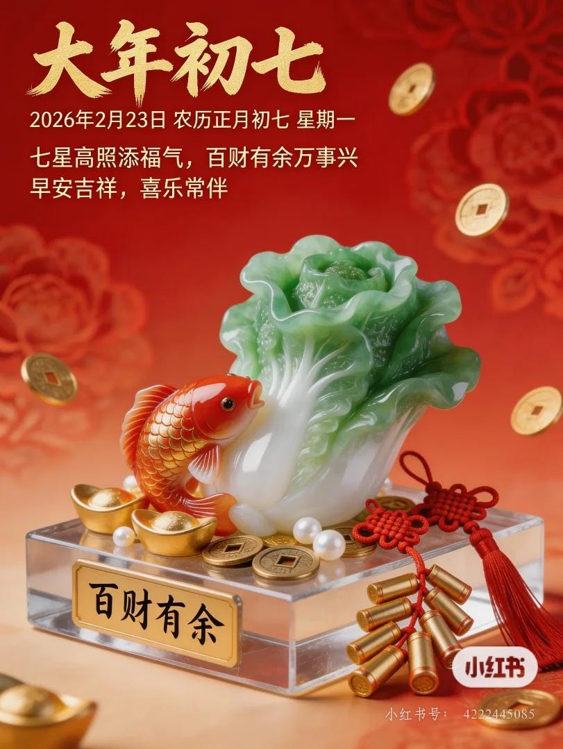 初七到,愿你新岁事业旺,生活畅~