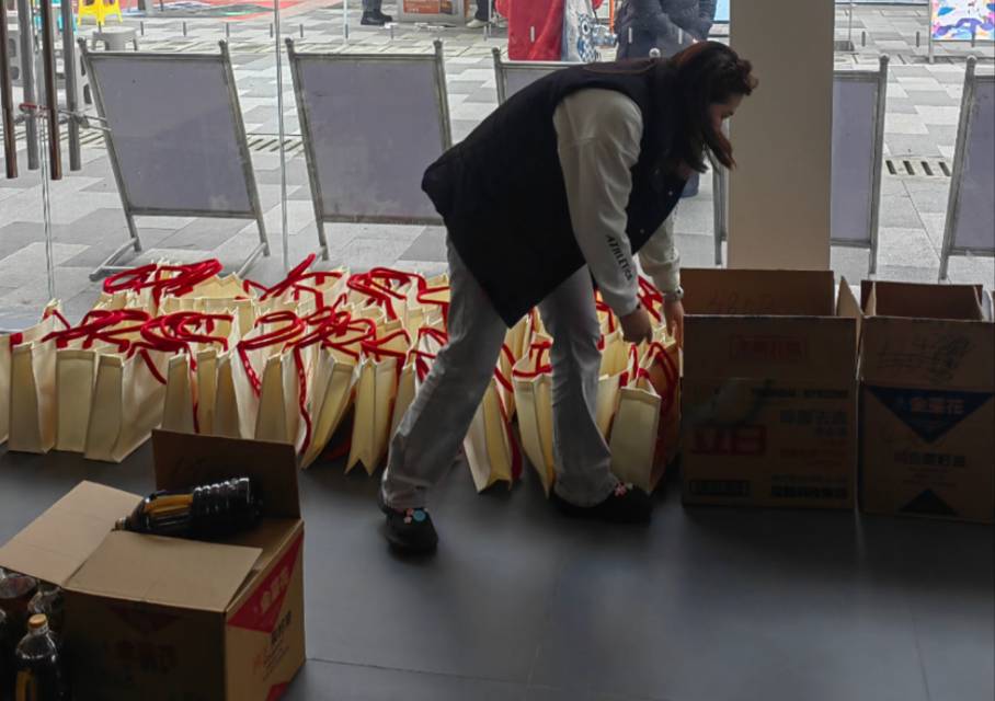工作人员分装物资、整理归类